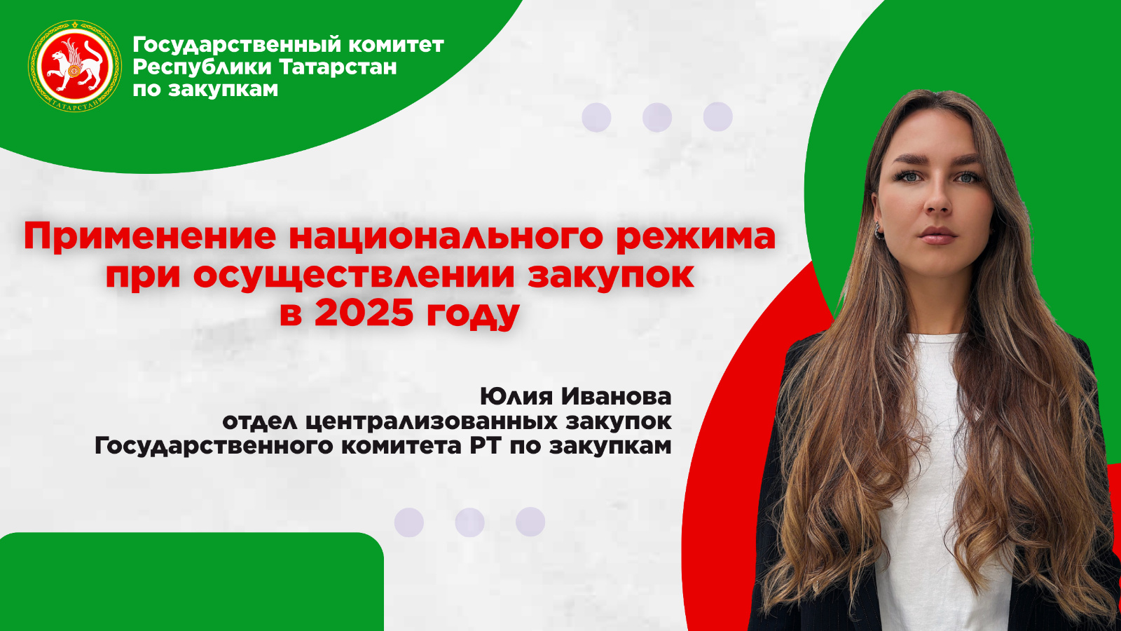 Татарстан Сатып алулар буенча дәүләт комитетының үзәкләштерелгән сатып алулар бүлеге өлкән белгече Юлия Иванова ВКонтакте җәмгыятенең туры эфирында түбәндәге темаларны ачты: