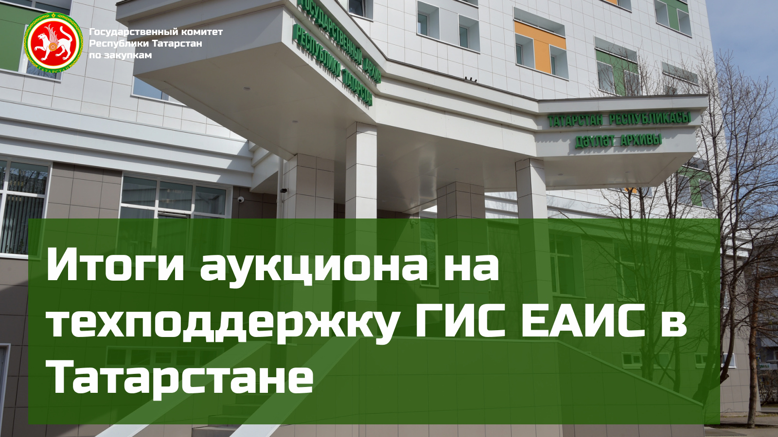 Татарстан Республикасының Сатып алулар буенча дәүләт комитеты «Татарстан Республикасының бердәм архив мәгълүмат системасы» дәүләт мәгълүмат системасына һәм ИТ-инфраструктурага техник ярдәм күрсәтү буенча электрон аукционга йомгак ясады. «Татарстан Республикасында архив эшен үстерү» дәүләт программасы кысаларында төзелгән Система документлар белән эшләүне автоматлаштыра һәм гражданнарның архив мәгълүматларына оператив керүен тәэмин итә. Заказ бирүче булып ТР Архив эше буенча Дәүләт комитеты тора.