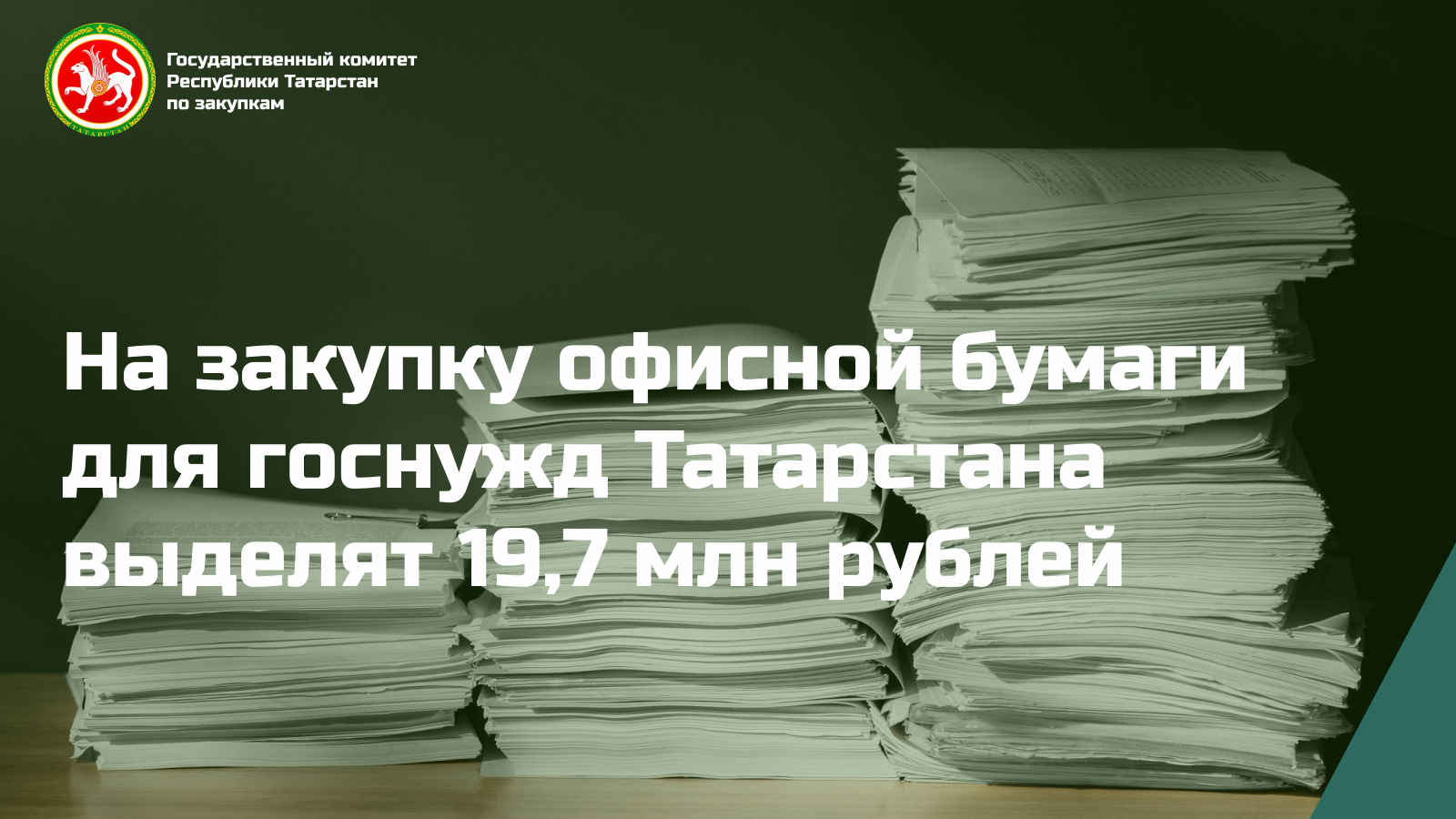 Татарстан Республикасының Сатып алулар буенча дәүләт комитеты республиканың 44 учреждениесе ихтыяҗлары өчен офис кәгазе белән тәэмин итүгә электрон аукцион игълан итте. Бу максатларга бюджеттан 19,7 млн сум акча җибәрелгән.